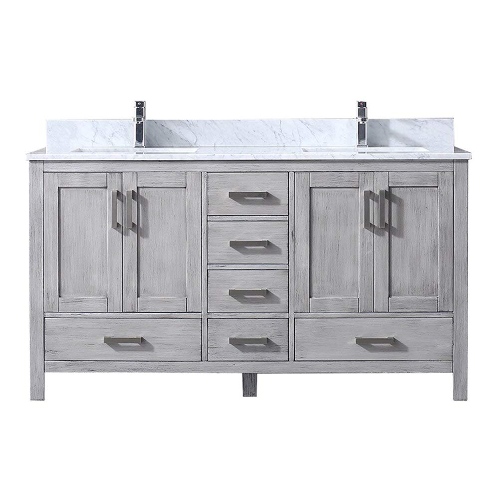 Lexora Jacques 60 Inch Distressed Grey Double Vanity White Carrara Marble Top Ebay from images-na.ssl-images-amazon.com The marble countertop, ceramic sinks, and elegantly crafted this stunningly beautiful 60 inch bathroom vanity is a perfect focal point for your bathroom. 60 inch width is a standard size and there many options to choose from such as wall mount or free standing models. Widespread faucets (faucet options available). Base/medicine cabinet, mirror, faucet, shelf, side cabinet/kit. Vanity ideas for small bedrooms. Check out our collection of small bathroom vanities today! James martin brittany double 60 inch transitional bathroom vanity victory blue. Enjoy free shipping on most stuff, even big stuff.