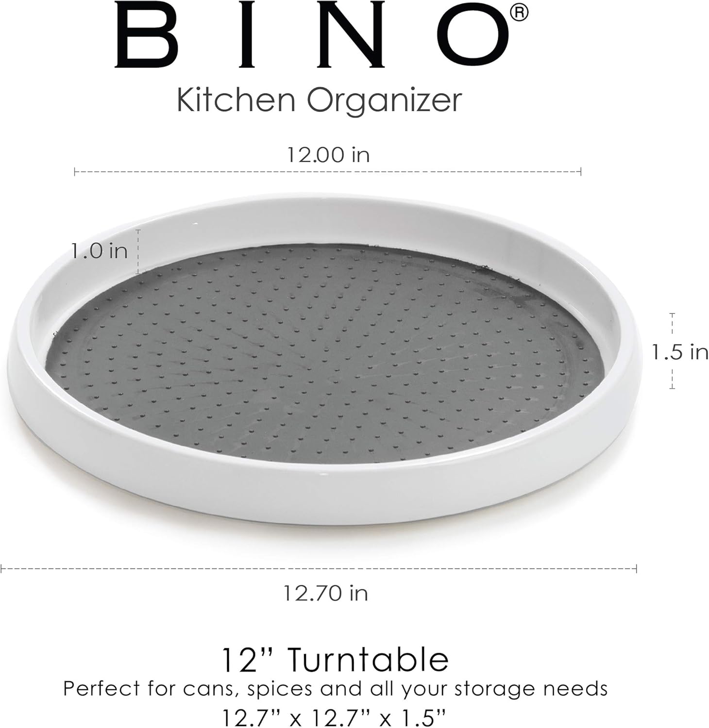 Unlike many similar spinning organizers, the copco turntable measures just 1.5 x 12 inches in diamete r, which means it's petite enough to fit into most standard cabinets.