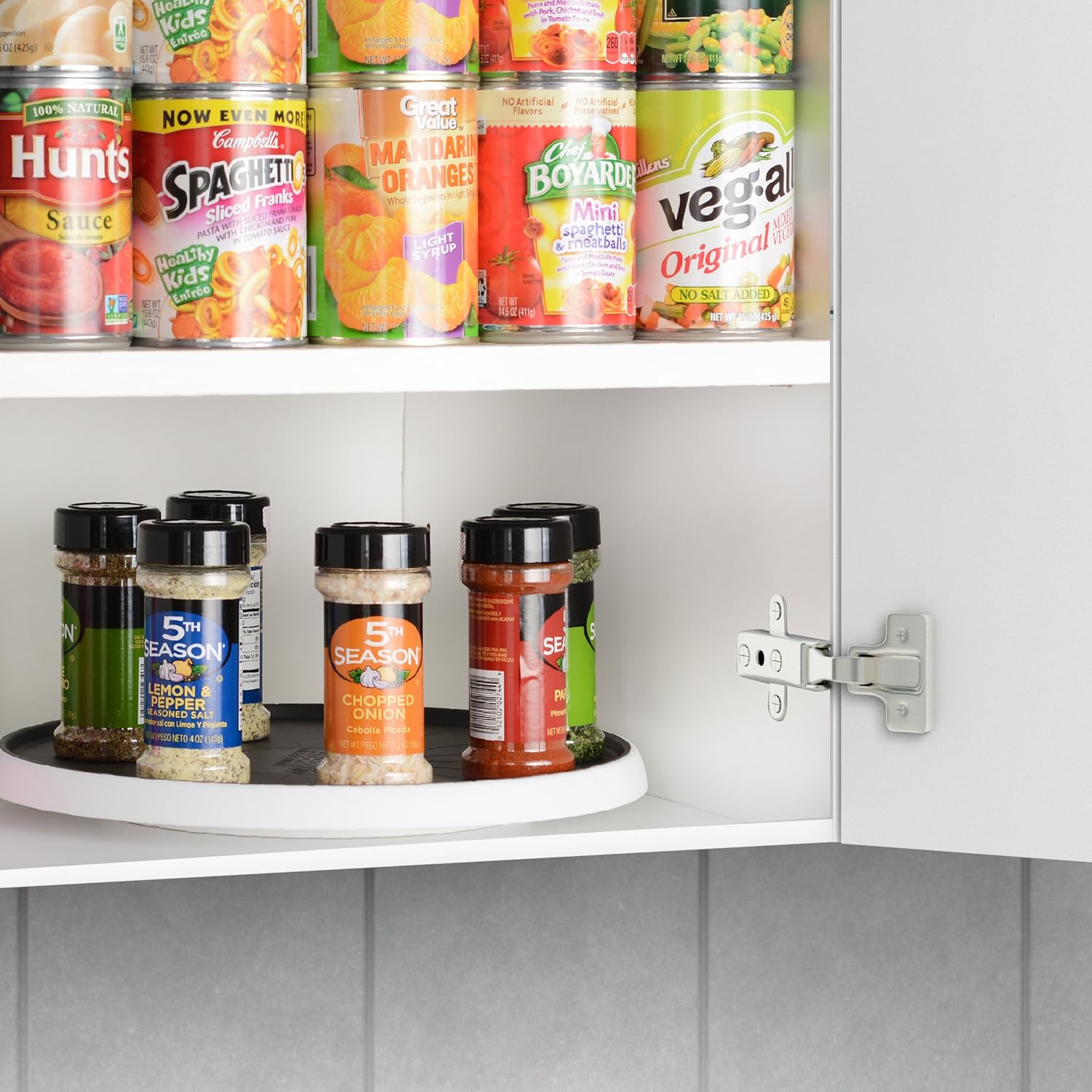 Youcopia sinksuite under sink turntable. Included 2 pack pantry cabinet lazy susan turntable, each measures 10 x 1.57 inch, the perfect size for your kitchen; Opening between tiers to take full advantage of vertical cabinet space. Sold by ami ventures inc. Turntable for kitchen cabinet, 12 inch stainless steel lazy susan organizer.
