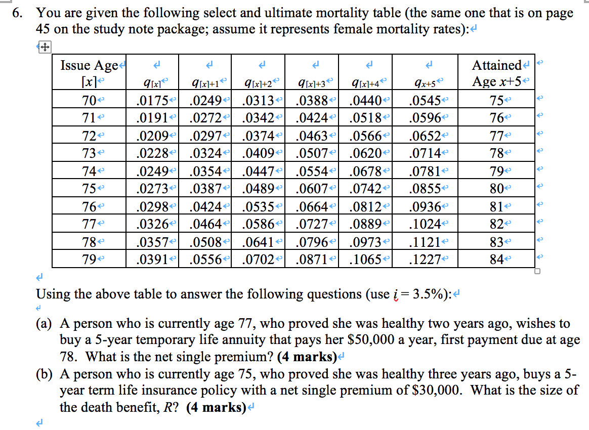 One type of mortality table is the period life table, which determines mortality rates for a specific population during a defined period of time. 1.1 mortality tables 1.1.1 base tables in the rpp study, the mortality experience for calendar years 1999 to 2008 of a subset of canadian public sector and private sector registered pension plans was reviewed. Mortality table is an actuarial table based on mortality statistics over a number of years. A cohort, or generation, life table is based on, or represents, mortality experience over the entire lifetime of a cohort of persons born during a. Annual report of the intercompany mortality experience for canadian standard ordinary life insurance policies. A mortality table, also known as a life table or actuarial table, shows the rate of deaths occurring in a defined population during a selected time interval, or survival rates from birth to death. In actuarial science and demography, a life table (also called a mortality table or actuarial table) is a table which shows, for each age, what the probability is that a person of that age will die before their next birthday (probability of death ). Ruark also benchmarked va mortality against its proprietary 2015 ruark variable annuity mortality (rvam) table, which was developed from the results of the prior study. The best method of construction of mortality table will be to select a large number of persons at attained age. Life tables and the rate of population growth: Specifically, the irs seeks comments on: Since portfolios have detailed individual records, an ideal approach is to use survival models. Other articles where mortality table is discussed: